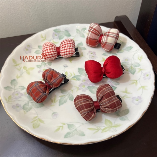 Kẹp caro nơ phồng đỏ
