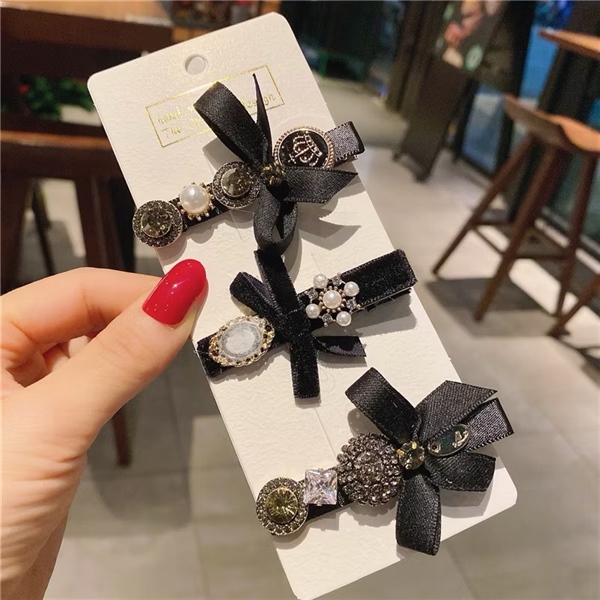 Kẹp nơ đen đính đá