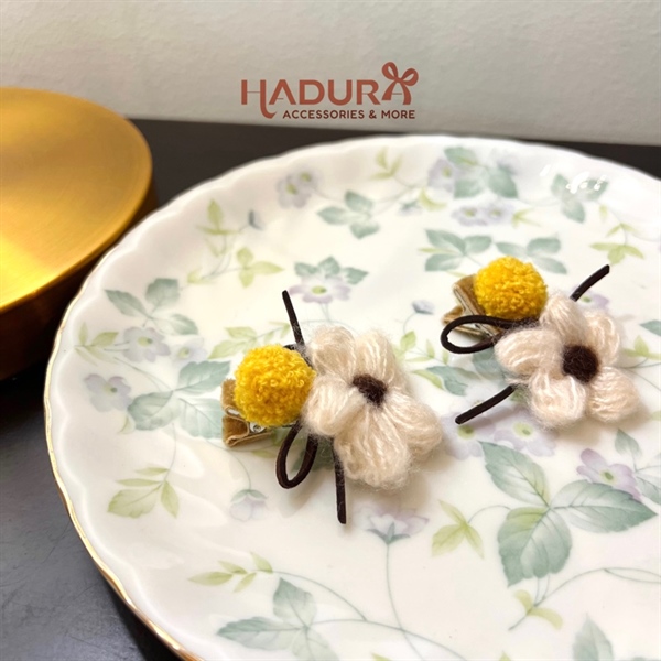 Set 2 kẹp hoa len vàng