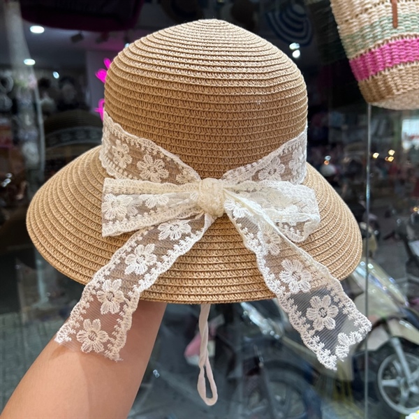 Nón cối nơ ren trắng
